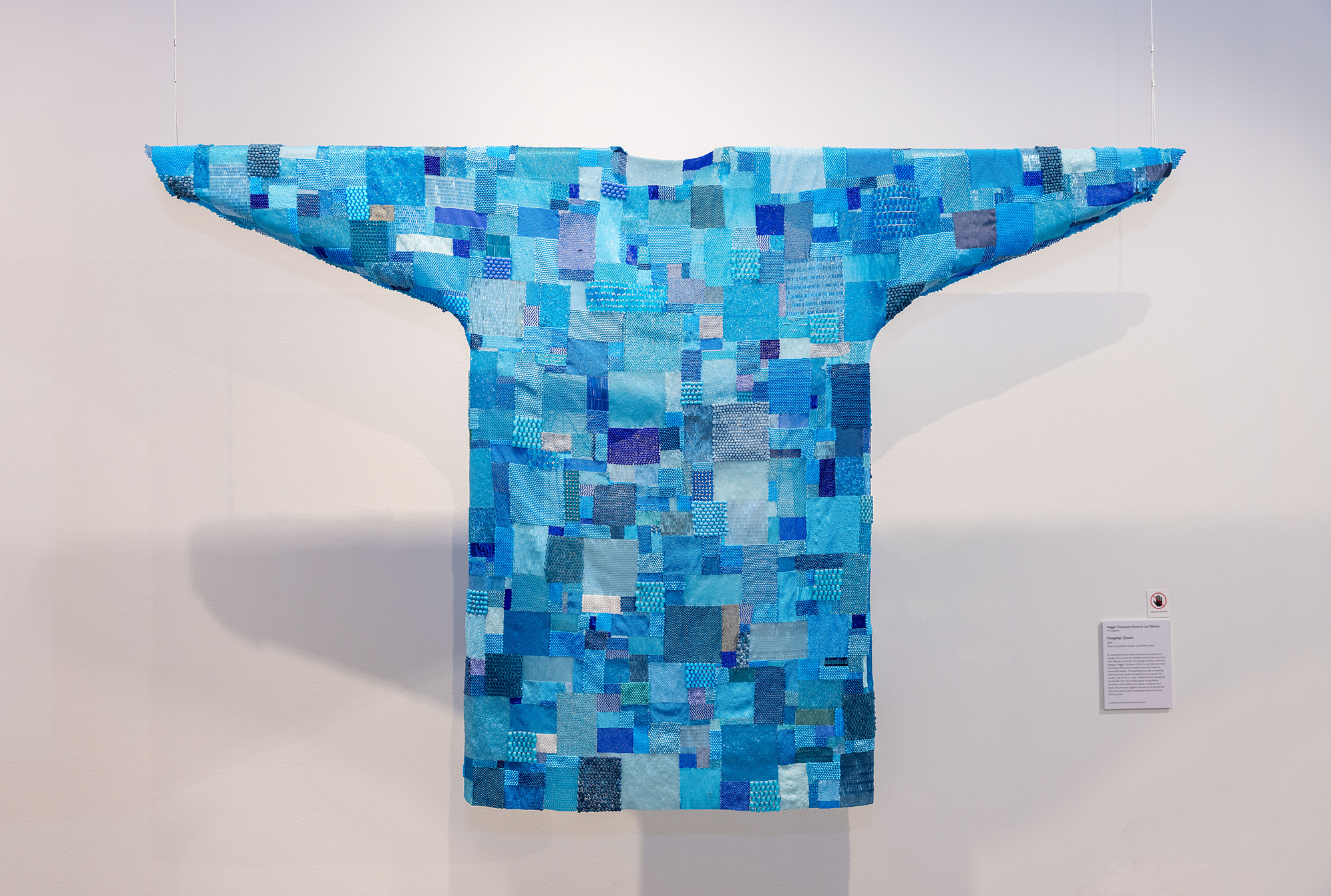 Maggie Thompson (Fond du Lac Ojibwe), Hospital Gown, 2025, glass and plastic beads, synthetic sinew, 45 x 73 x 2 in. Courtesy of the artist and Bockley Gallery. Photo credit: Emmanuel Figaro/Center for Craft.