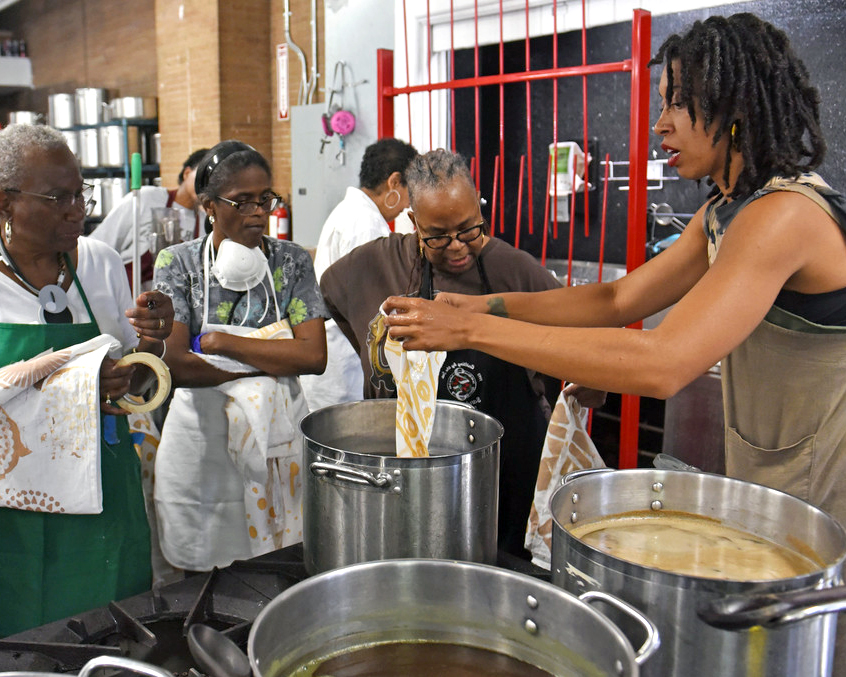 2024 Teaching Artist Cohort grantee Kenya Miles teaches natural dye techniques to members of the African American Quilters of Baltimore, 2020. Photo credit: Kenya Miles.