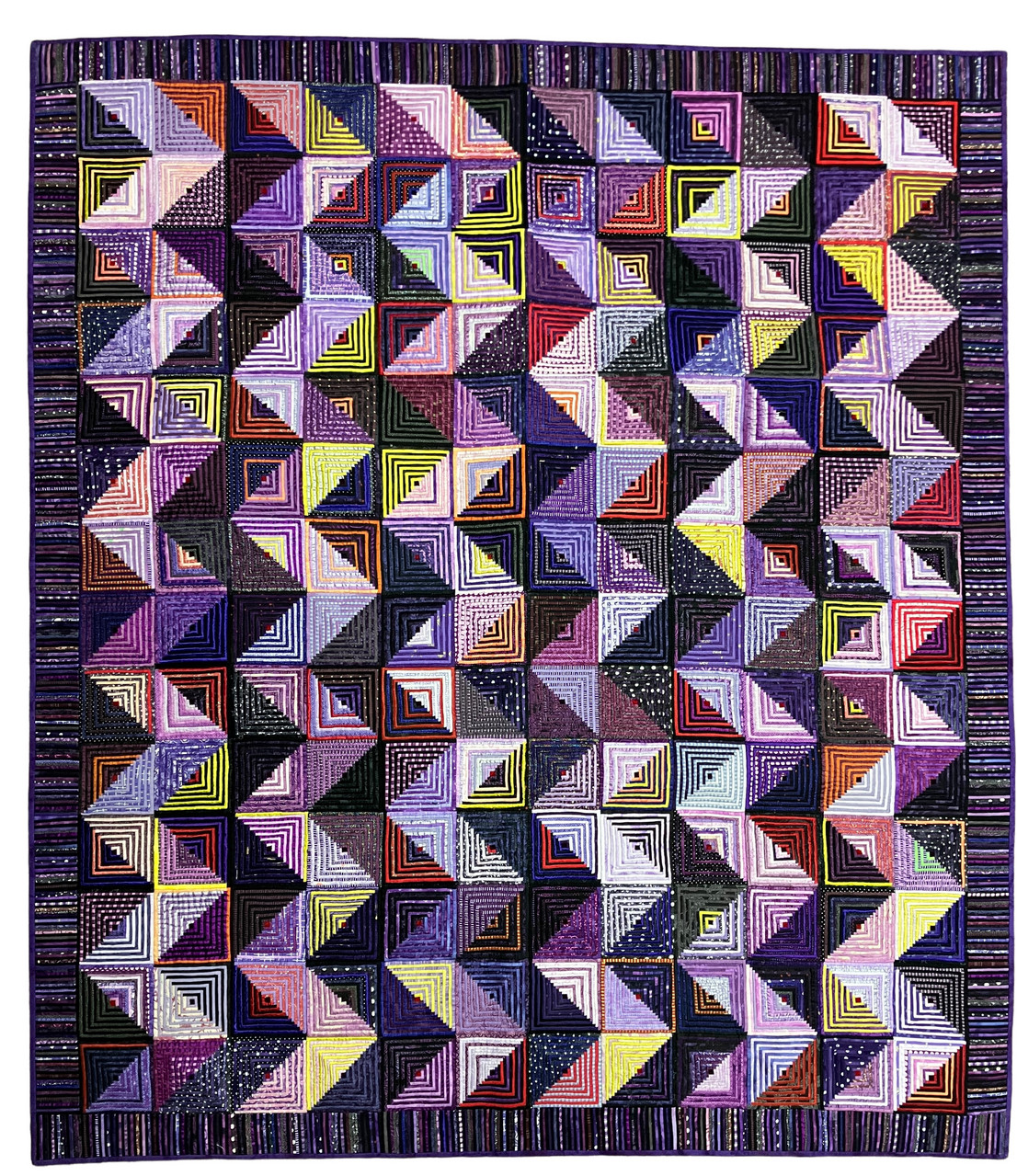 "The Best Medicine," 2022, quilt, silks, velvets, synthetics, commercial cottons, hand-dyed cotton and linen fabrics, 33 x 33 in. Photo courtesy of the artist.