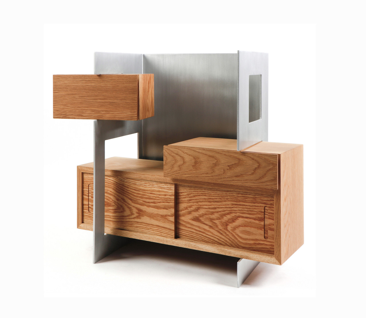 “Vector Cabinet,” 2024, white oak, aluminum, 62 x 32 x 48 in. Photo courtesy of the artist.