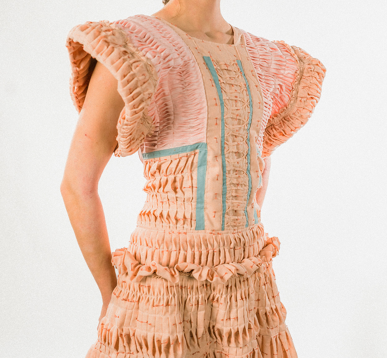 "Ruffle Collar Top," 2025, taffeta, cotton, ribbon, embroidery floss, silk, 25 x 42 in. Photo courtesy of the artist.